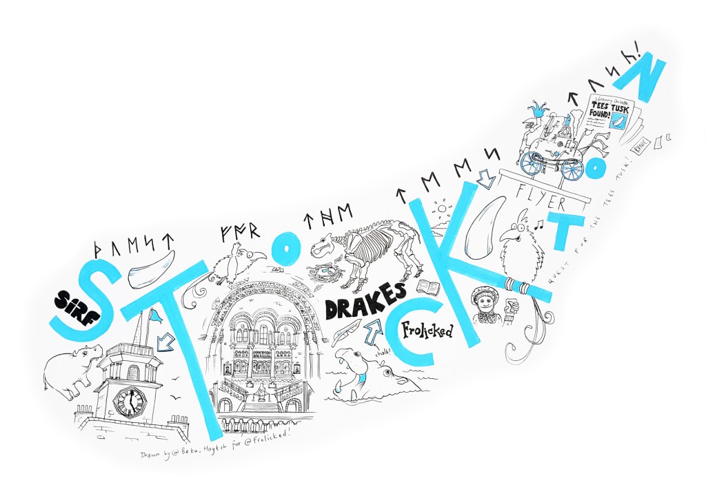 The Tees Tusk is an actual Stockton-on-Tees legend – a real life story about the discovery and excavation of a hippo’s tooth, found in the region more than 100 years ago. It is the northern-most recorded discovery of hippo remains in the world, but sadly, the tooth made it’s way to it’s final known location… and was then lost. The story provided the perfect narrative for another of Frolicked’s successful game-based mysteries, where audience members met both an inquisitive pair of birds and our ever intrepid octogenarian explorer, Gran, whilst searching for and decoding a set of clues hidden across the town.