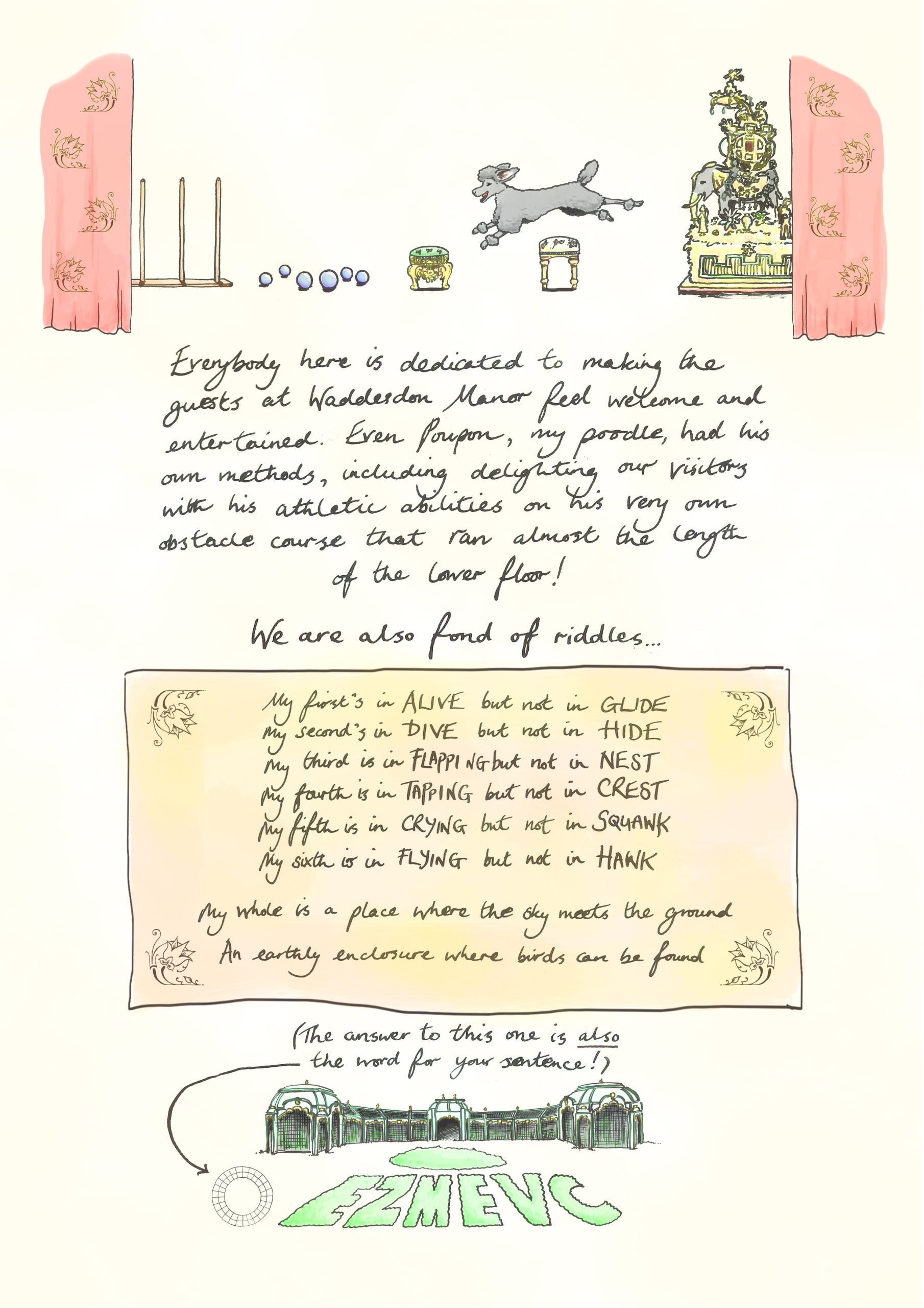 Every poster, page, letter, clue and illustration was hand drawn and coloured by Beka and created especially for The Waddesdon Hunt: